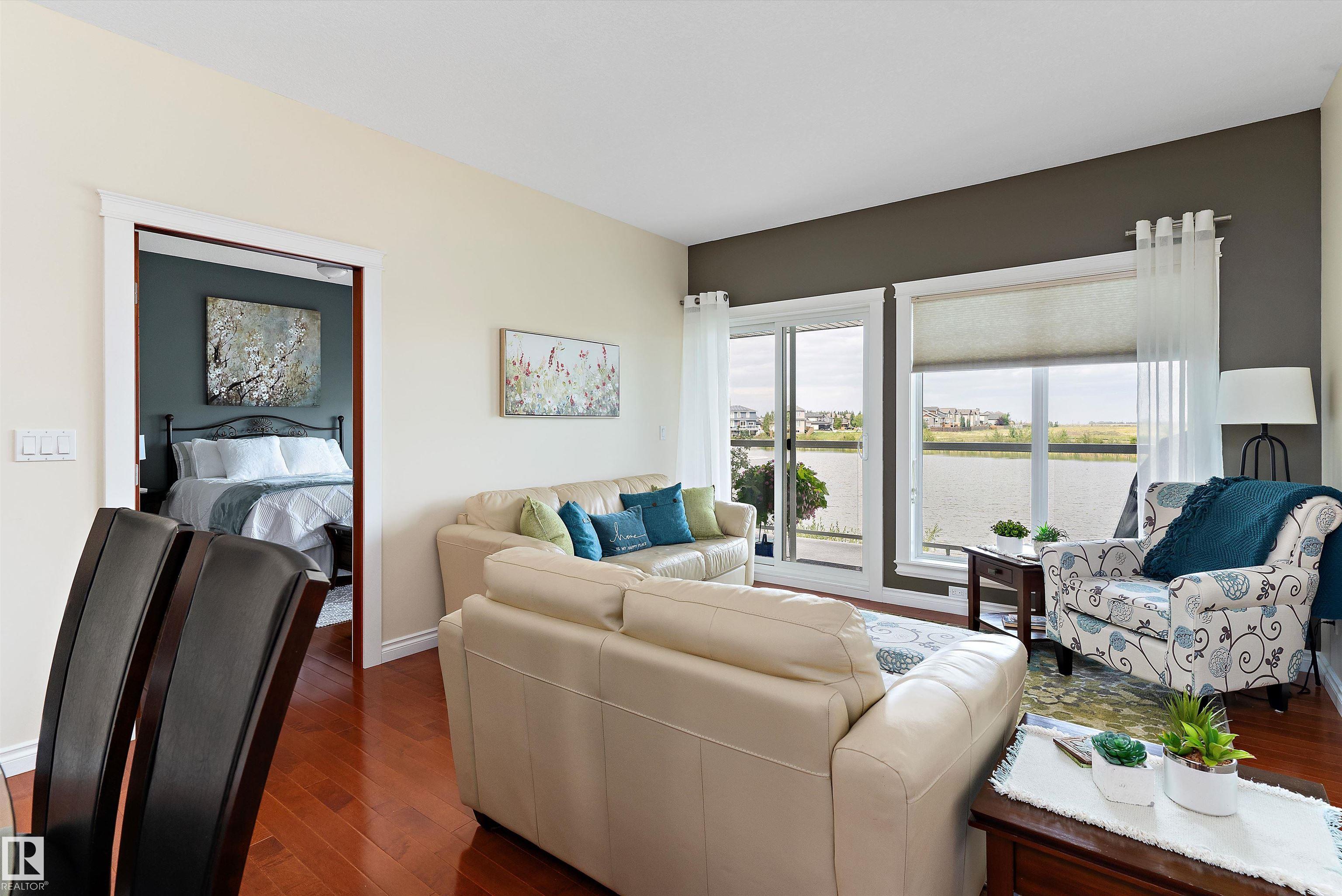 45+ ADULT CONDO BACKING ONTO LAKE! This Walk-Out Bungalow has been meticulously cared for & pride of ownership is evident. Features include an open concept design boasting a dream kitchen with gorgeous granite countertops, top of the line cabinets, living room/dining room with Large windows offering a lovely view of the lake. 2 bedrooms on main floor with walk-in closet, 3pc ensuite & patio doors leading to the back deck in the master bedroom. Main floor has new vinyl plank flooring done in 2025 plus freshl...
