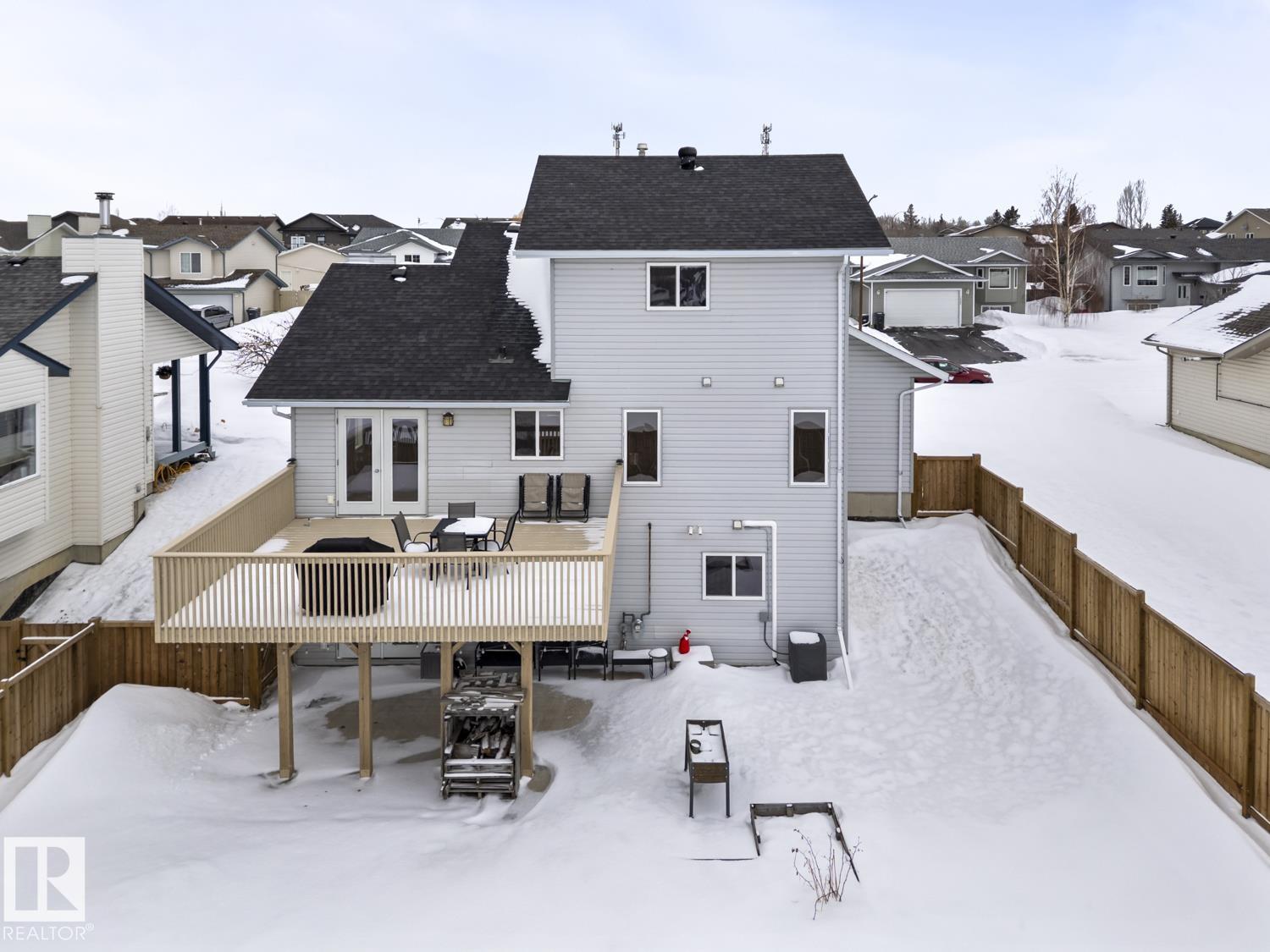 Experience refined living in this well maintained 1.5-storey home, situated in one of Cold Lake's most sought-after neighbourhoods. The bright kitchen features centre island, premium appliances, and ample cabinetry. A spacious deck off the dining area offers sweeping views of abundant green space and the stunning lake. The main floor includes primary bedroom complete with ensuite bathroom and walk-in closet, as well as living room, powder room, laundry facilities, and direct access to heated double car gara...