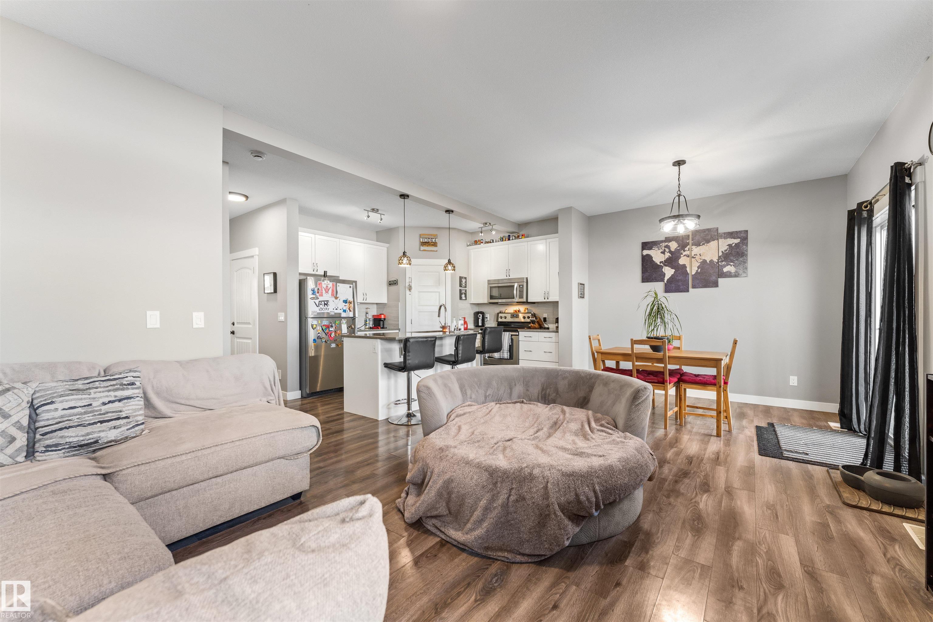 Modern & meticulously crafted for an aesthetic atmosphere, this 2014 duplex offering 1,348 sq ft of functional living space, is selectively situated in the desirable community of Hilldowns, where fine dining, shopping and easy access to the Yellowhead, are but a mere minute away. An open concept main floor embraces a contemporary colour palette as laminate flooring extends past the 2pc powder room, beyond the kitchen, so stylishly outfitted with stainless steel appliances, granite counters & island includin...