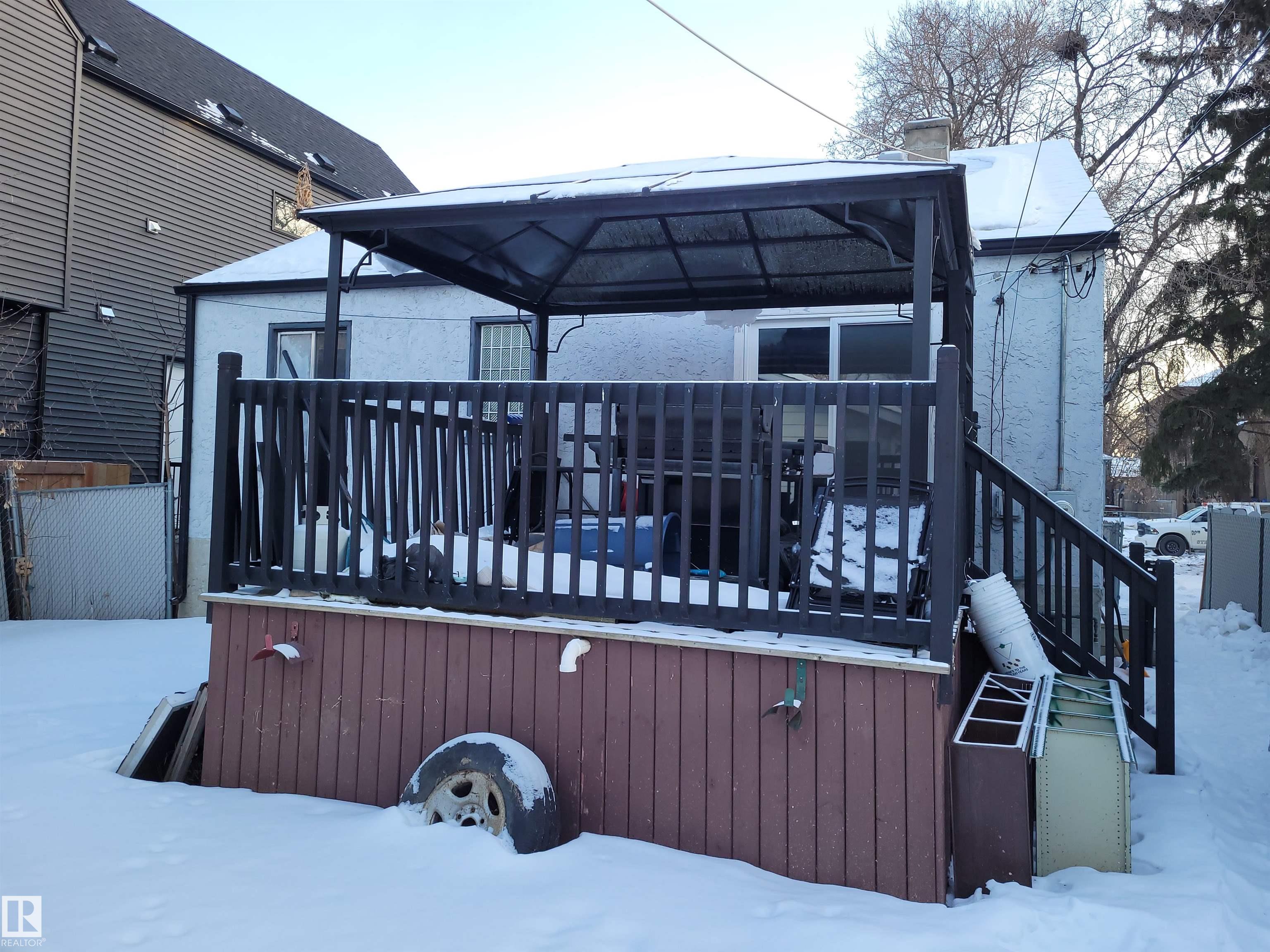 A diamond in the rough that needs work and is priced accordingly at lot value. Property is sold "as is, where is" with no warranties or representations. Prime location in King Edward Park, walking distance to schools, shopping, transit and the LRT. Excellent opportunity to do an infill or possibly renovate. The home features original hardwood and cove ceilings and a kitchen with a patio door leading to the deck. 2 good sized bedrooms and a bathroom complete the main floor. The separate entrance has tiled ...